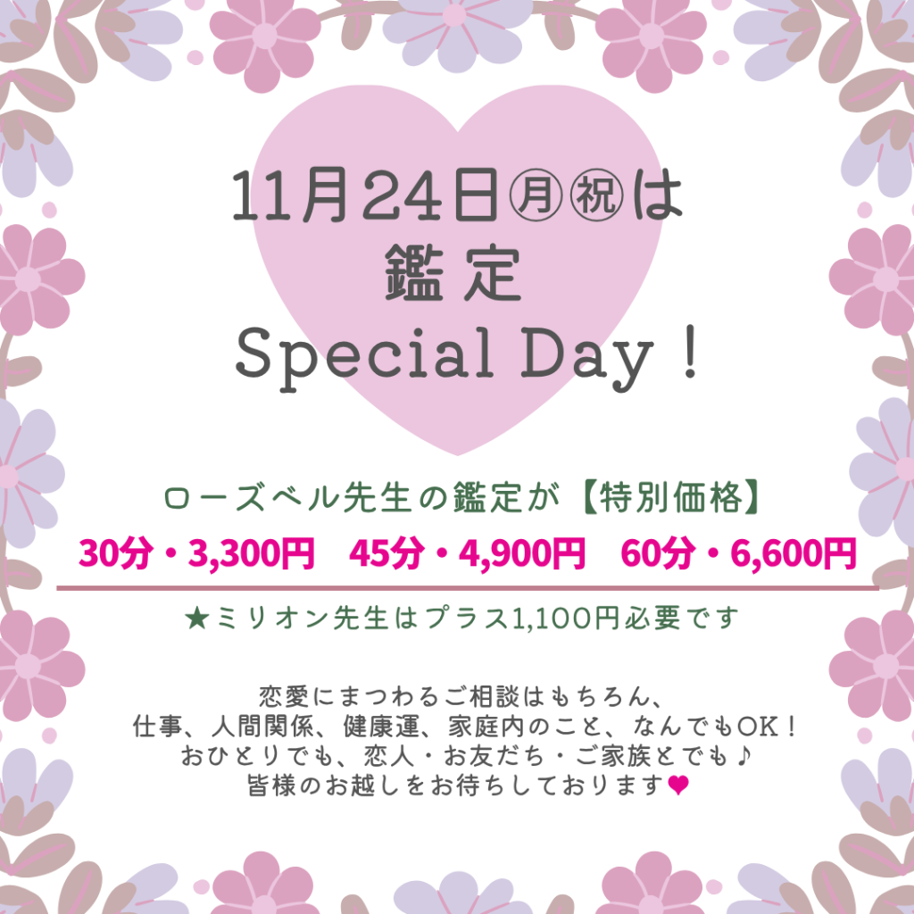 通常よりもとってもお得なスペシャル価格で鑑定をお受けいただけるこの機会に、