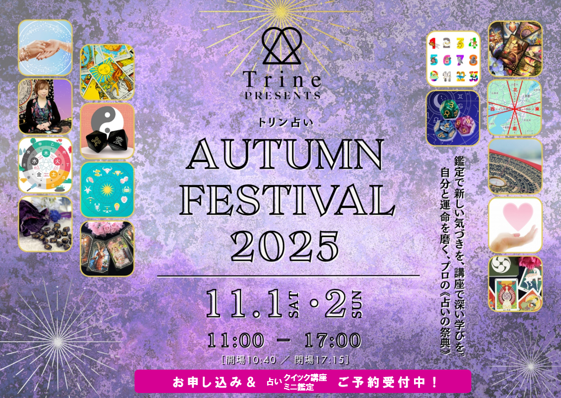 いよいよ今週末・11/1(土)・2(日)開催🌟 《秋の占いまつり🔮》で、ボリュームたっぷりの《占い体験》はいかが?【トリン占い オータムフェスティバル2025】お知らせ vol.3 ~占いスクール☆イベント特典情報