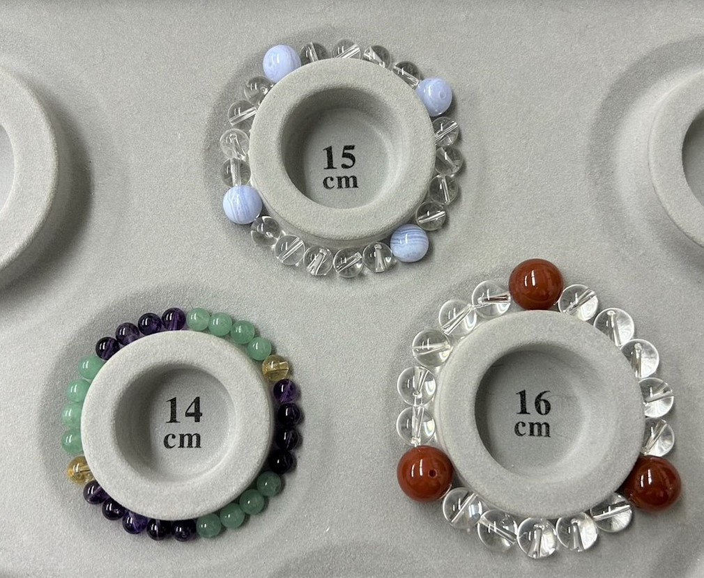 選んだ石を、ブレスレット制作専用のトレイにできあがりをイメージしながらレイアウトしていきます。ここで「もっとこうした方がいいかも!?」と新しい発想がひらめくことも💡✨