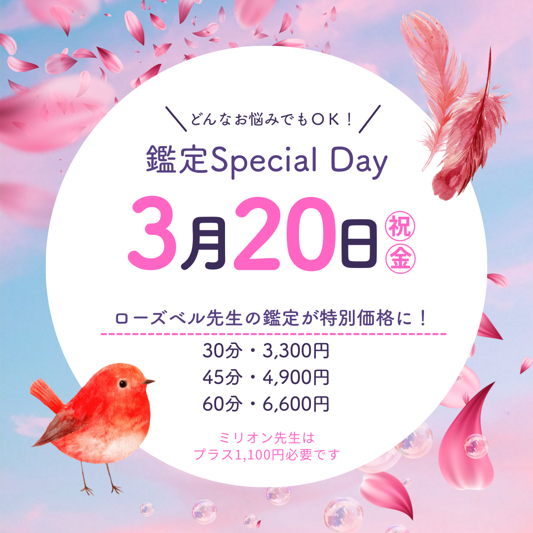 ローズベル・ミリオン・KAORI鑑定可能時間(3月末まで・4月以降はお電話でお問い合わせください)